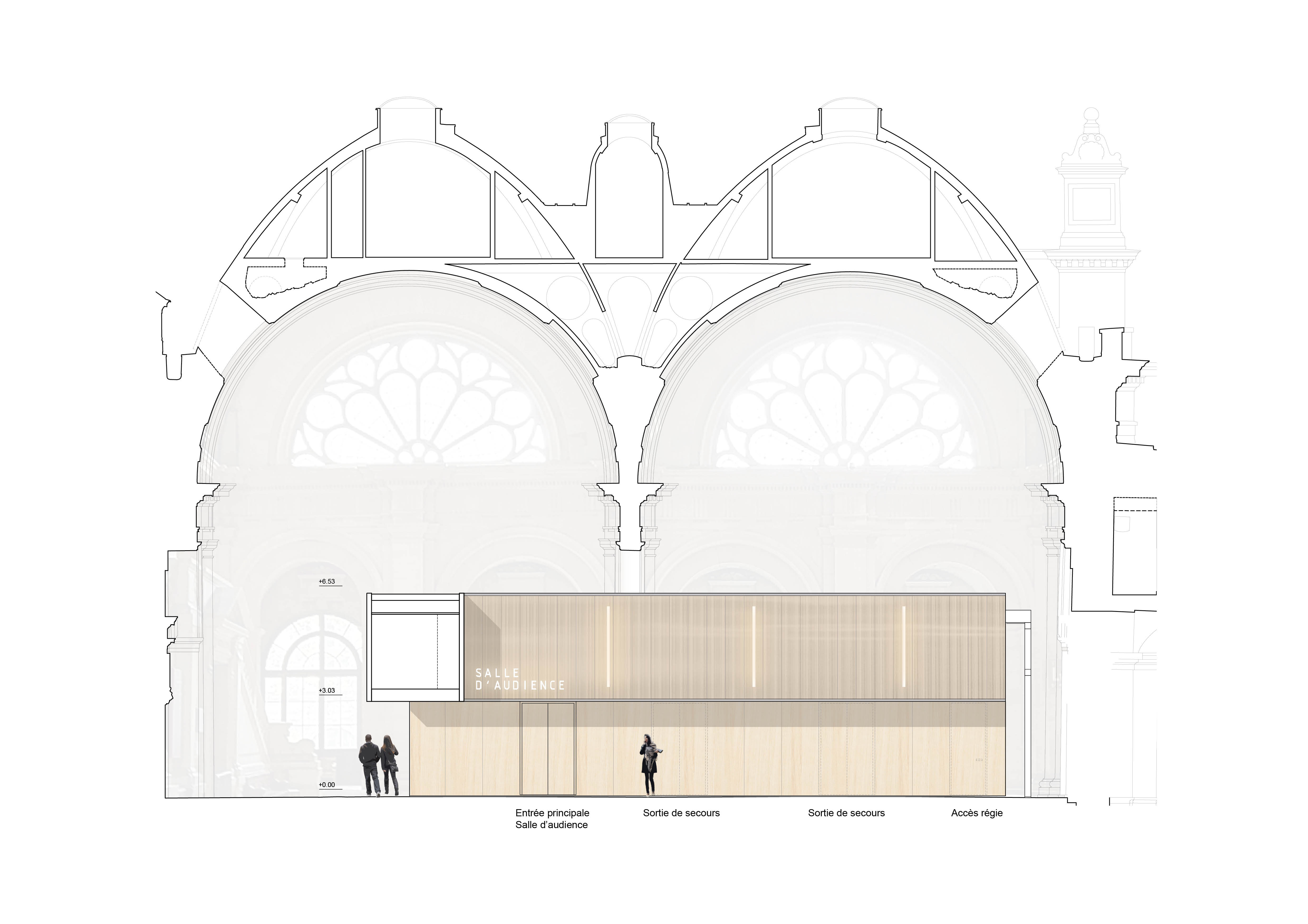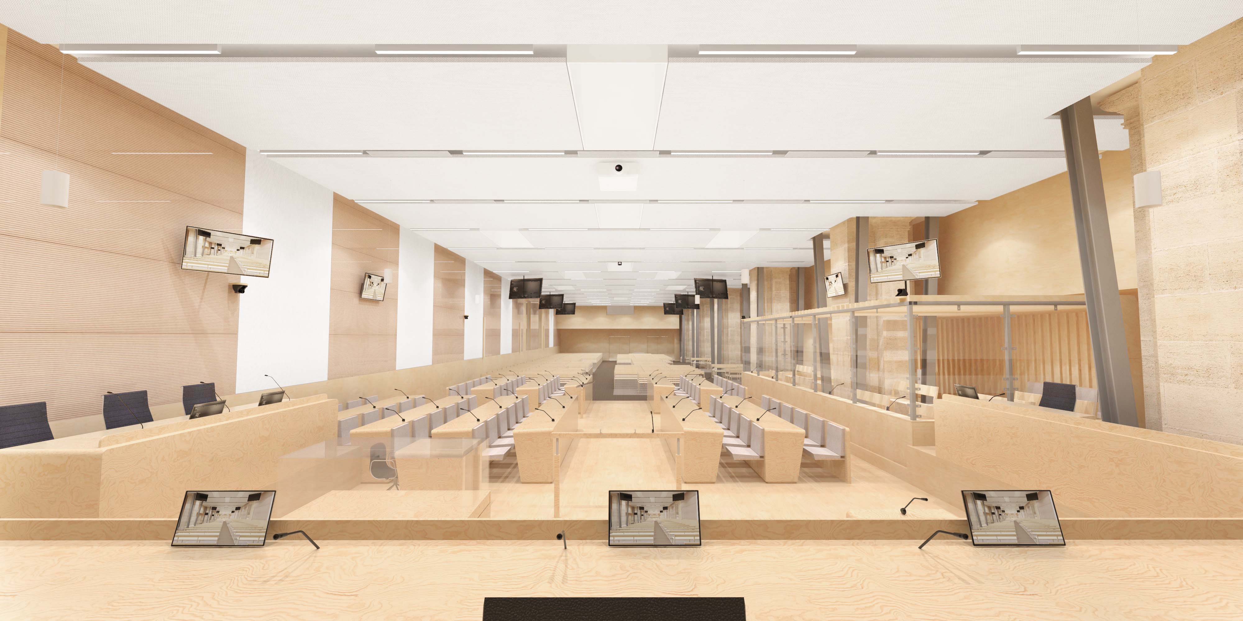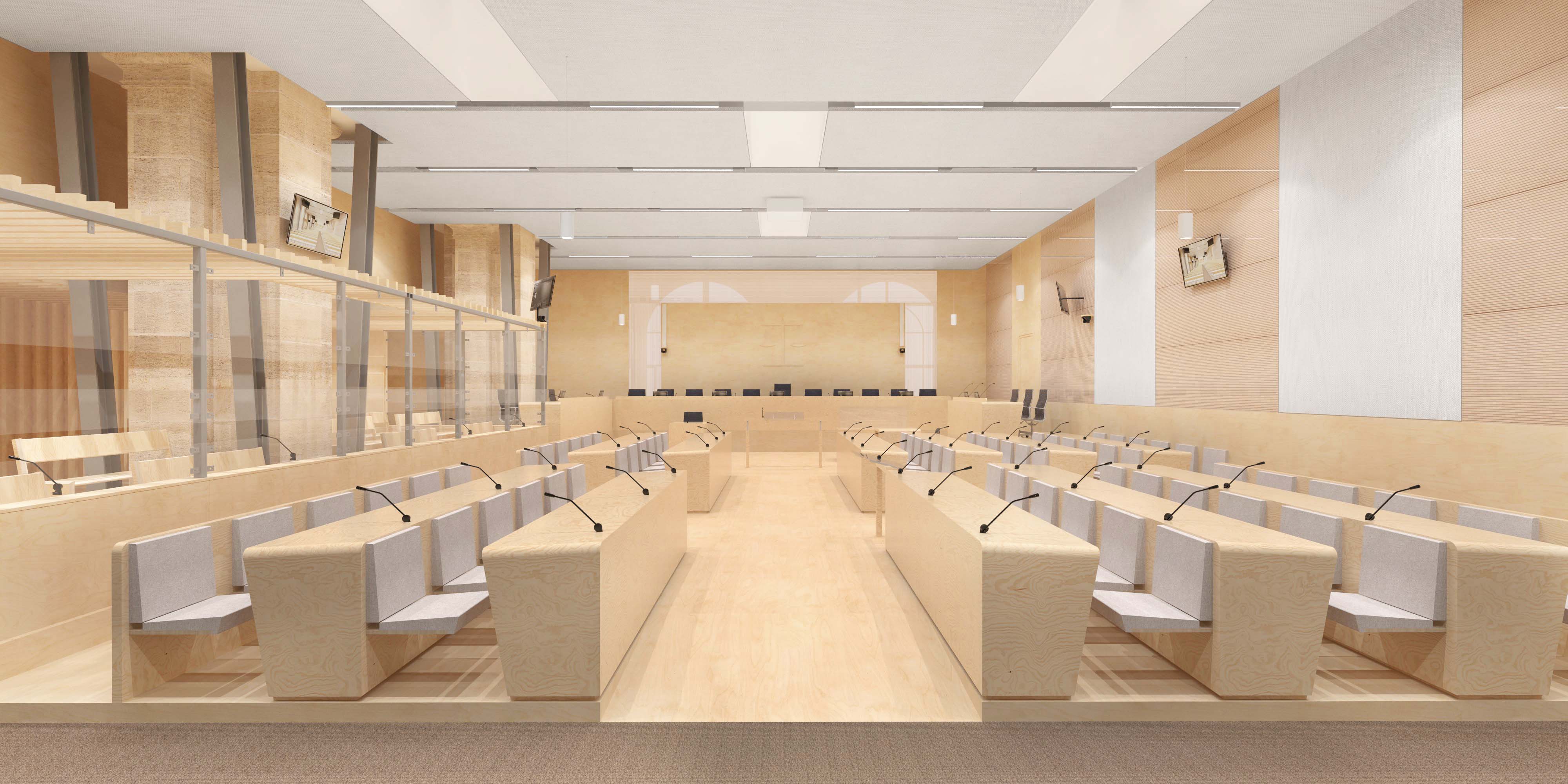 Conception et réalisation d’une salle d’audience en collaboration avec l’agence d’architecture Béatrice Mouton